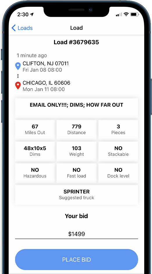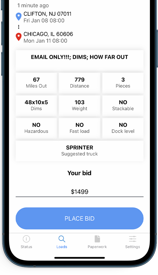 App for drivers. Discover available LTL loads around you and book them without making a call.